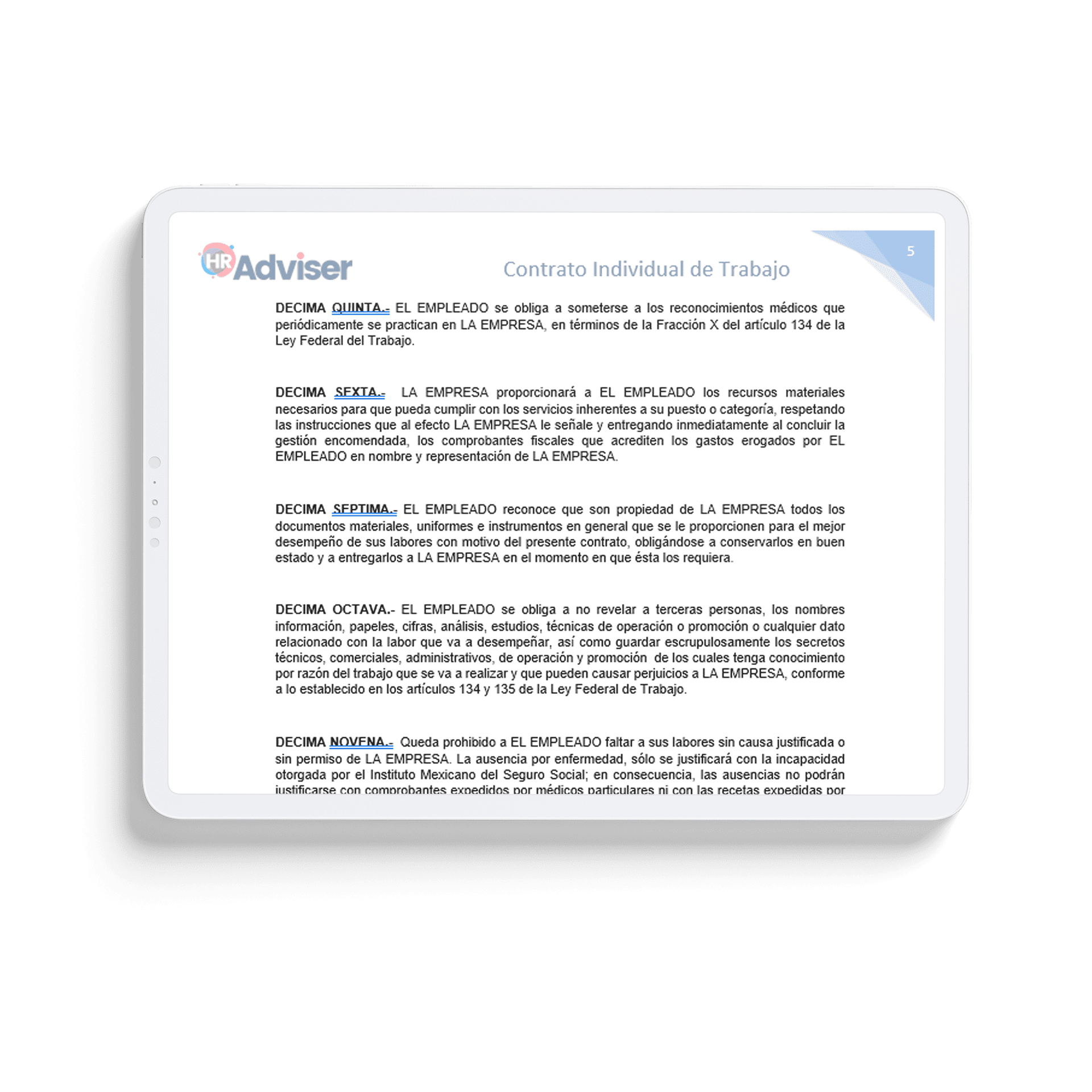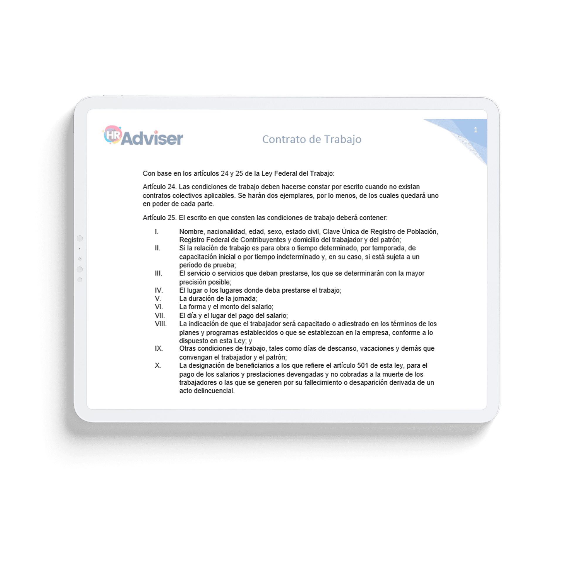 Con este formato podrás comenzar a establecer la relación de trabajo entre la empresa y sus empleados. Contiene cláusulas para especificar si el trabajo es por tiempo determinado o indeterminado, el servicio que se va a prestar, el horario, el lugar, el pago del salario, entre otras. Este contrato es 100% editable.