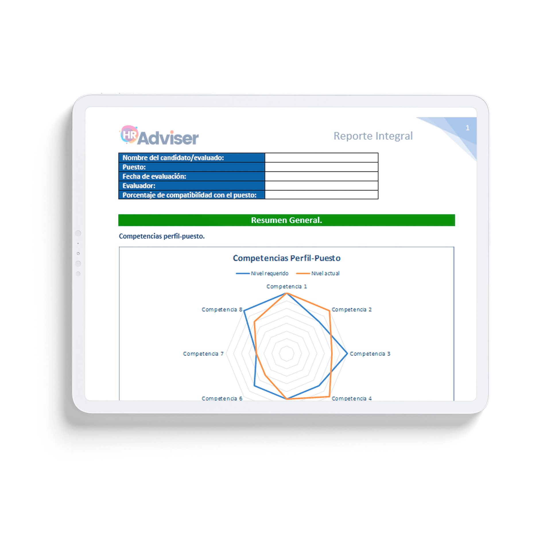 Este reporte integral de selección le permite al reclutador consolidar toda la información que obtuvo del candidato durante el proceso, evaluar su compatibilidad con el puesto y determinar que competencias y/o conocimientos podrían ser desarrollados. Es una manera de evaluar otros aspectos del candidato y lo que representaría para la empresa su contratación. También, es una forma sencilla de visualizar y presentarle la información a aquellas personas que no están familiarizados con los conceptos de reclutamiento y selección como los jefes.