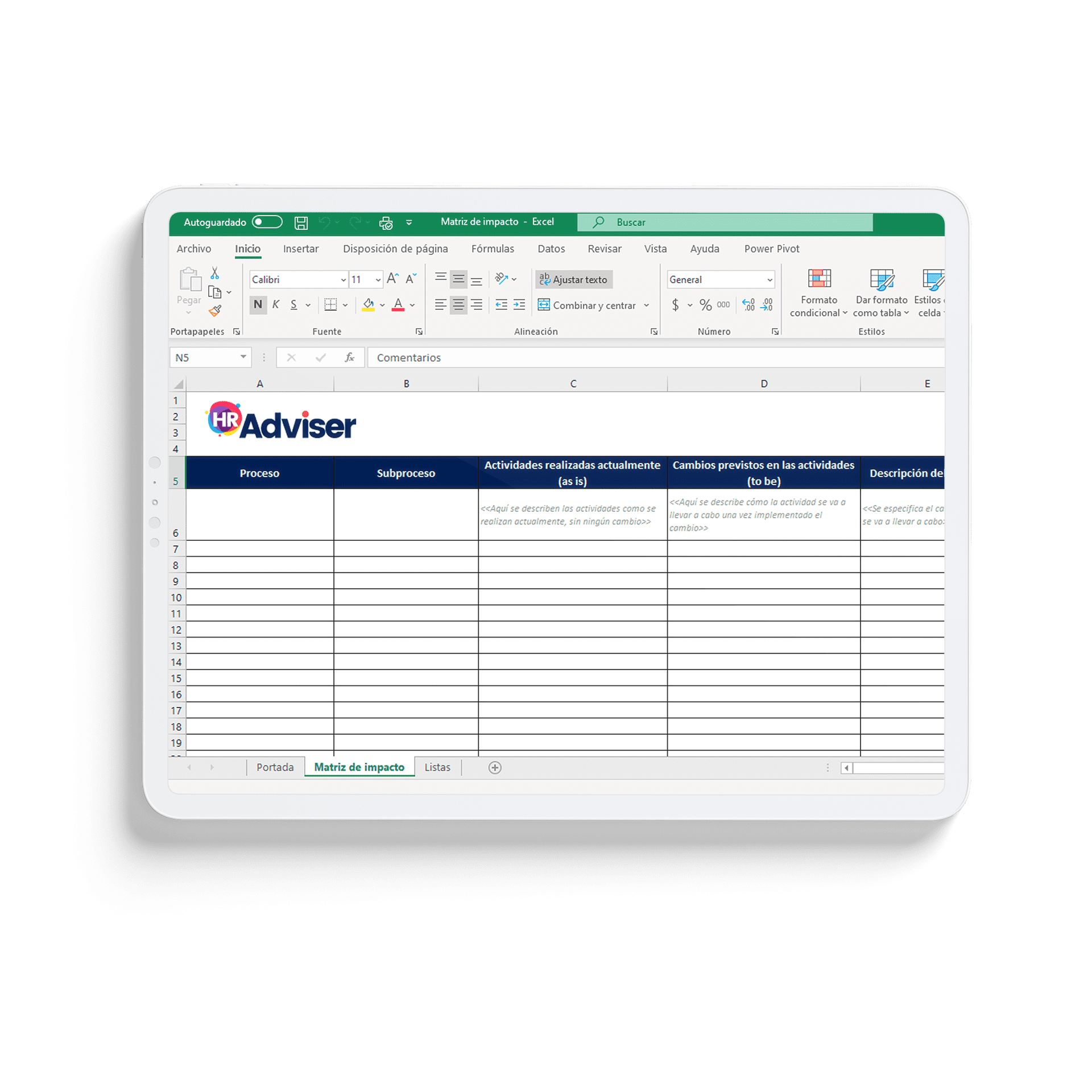 Utiliza esta matriz 100% editable para establecer el estado actual y futuro de las actividades de un proceso, es decir, visualizar como va a cambiar el trabajo una vez que se lleve a cabo la implementación de la herramienta tecnológica y no solo eso, sino que también, te permite evaluar si se va a incrementar o disminuir la carga de trabajo, si se va a necesitar mayor o menor supervisión y si se cuenta con el equipo adecuado. Incluso, puedes llegar a visualizar el tipo de capacitación que se requerirá.