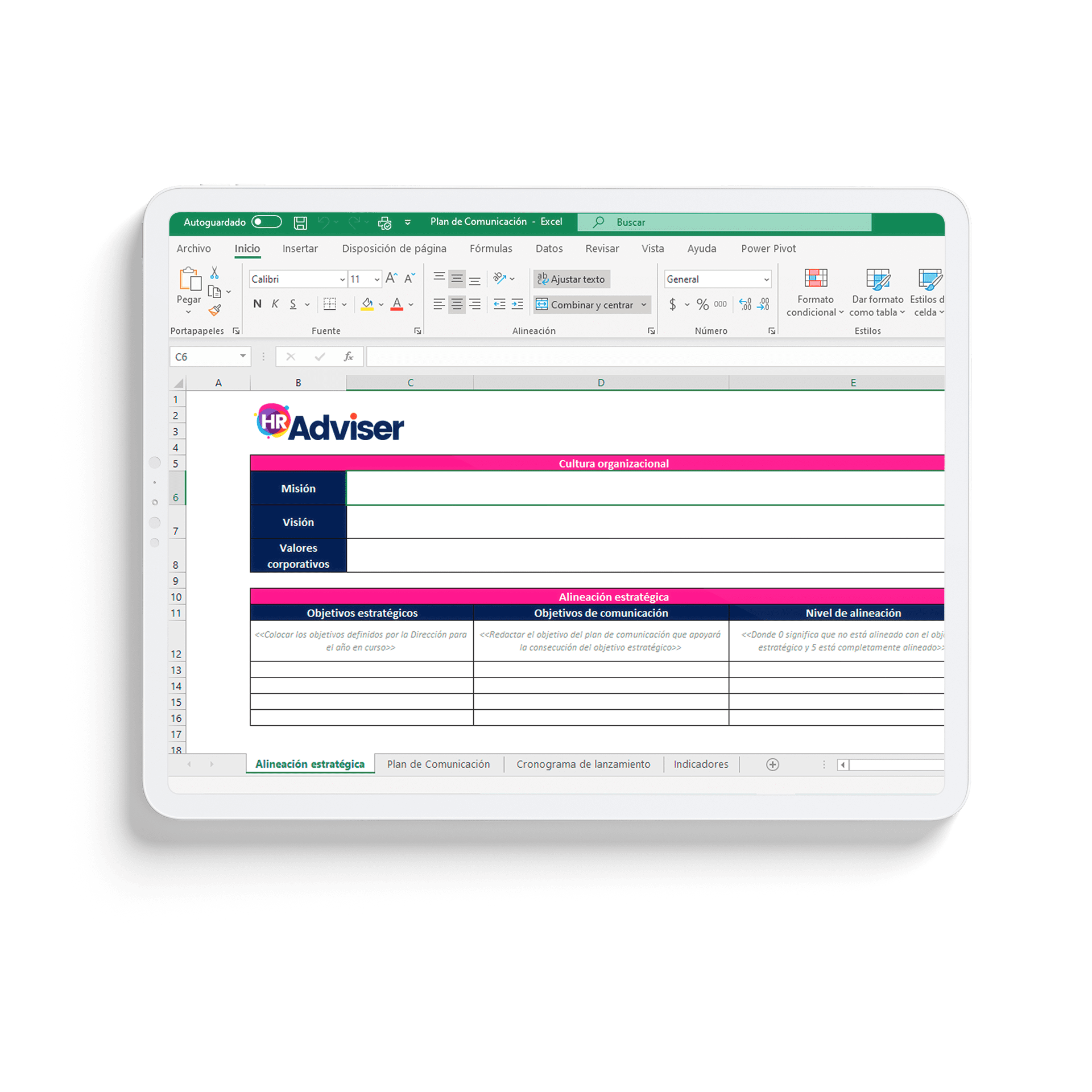 Este es el documento ideal para ayudarte en la planeación de la comunicación interna, ya que te permitirá establecer y alinear los objetivos de la comunicación a la estrategia del negocio y también, definir las audiencias, los mensajes y los indicadores para llevar a cabo una adecuada gestión de la misma.